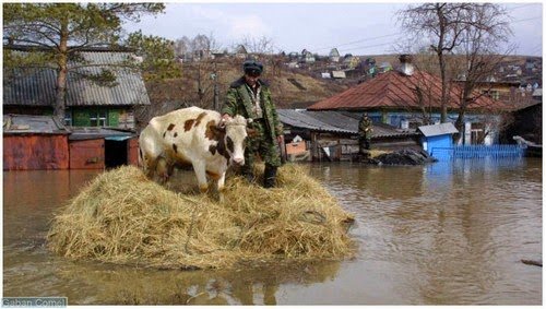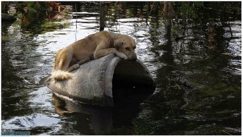 Berikut adalah foto-foto haiwan sedang menyelamatkan diri dari banjir.