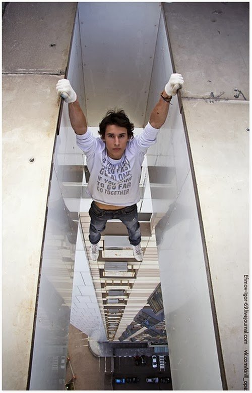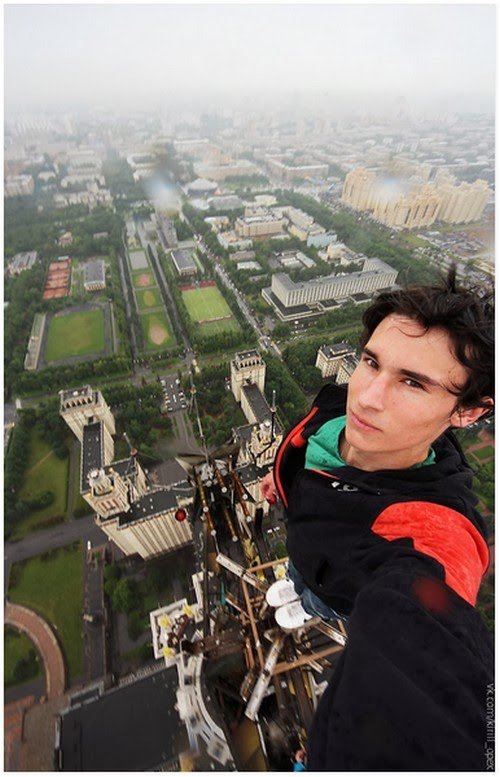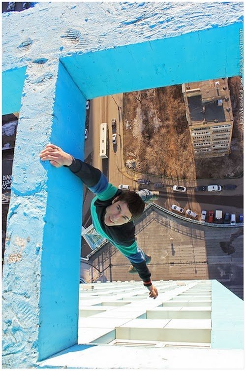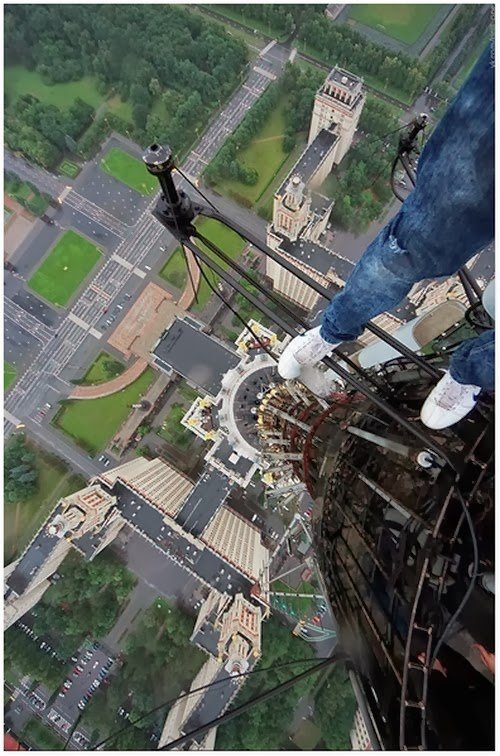 Jurugambar dan pendaki bangunan pencakar langit berasal dari Moscow, Rusia, Kirill Oreshkin (alias kirill_opex) mendokumentasikan setiap prestasi pertunjukkan nekad dan sangat berbahaya ketika dia berjaya mendaki ke puncak bangunan di bandarnya dan bergantungan ratusan meter di udara.