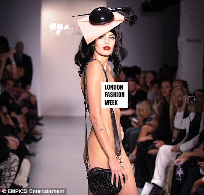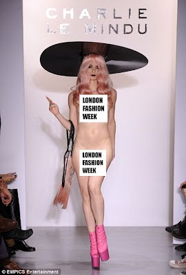 Desainer Charlie Le Mindu, menimbulkan kehebohan di ajang “London Fashion Week“, karena menampilkan para model yang telanjang di atas catwalk. Seperti diberitakan Daily Mail, para model bugil itu hanya mengenakan sepatu boot berhak tinggi warna pink, topi, tas, wig, dan tanpa mengenakan pakaian yang menutupi tubuh mereka.