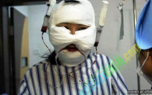 Suka tidak suka, pasien harus rela memakai topeng gips berbentuk konyol seperti ini