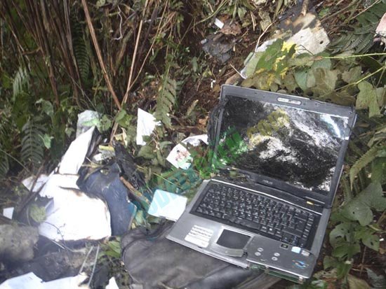 Di satu foto, tampak satu unit laptop milik penumpang yang masih terbuka. Selain itu, di satu serpihan, tampak gambar gagahnya pesawat Sukhoi.