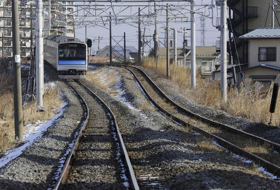 Rel kereta api di Tagajo, Miyago pada 13 Maret 2011 dan 12 Januari 2012. (Toru Yamanaka/AFP/Getty Images).