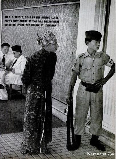 | Seorang pangeran yang dulunya berasal dari kasta berkuasa menengok ke dalam Istana Yogyakarta dimana para negarawan sedang bekerja membuat undang-undang. |