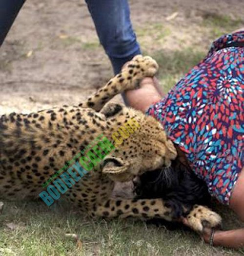 Sang wanita itu dipaksa untuk terjatuh ke tanah dengan darah yang mengalir dari kepalanya. Ajaibnya wanita ini selamat dari dari maut setelah mendapat serangan cheetah yang seharusnya jinak tersebut. Padahal ada dua macan tutul yang menyerangnya, membanting ke tanah dan menggigit kaki dan kepalanya dalam serangan yang mengerikan.