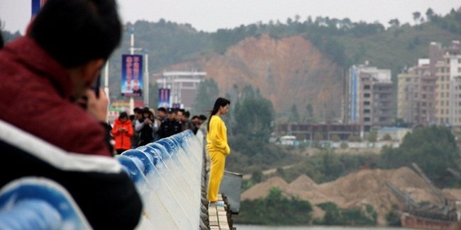 Dilansir dari online.thatsmags.com, gadis berbaju kuning tersebut terlihat berdiri di pinggir jembatan. Aksi tersebut lantas membuat banyak orang penasaran dan akhirnya mengerumuninya. Ada juga sejumlah polisi yang ikut berjaga-jaga di sana.
