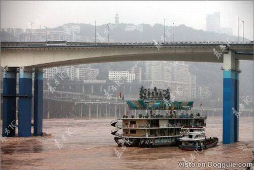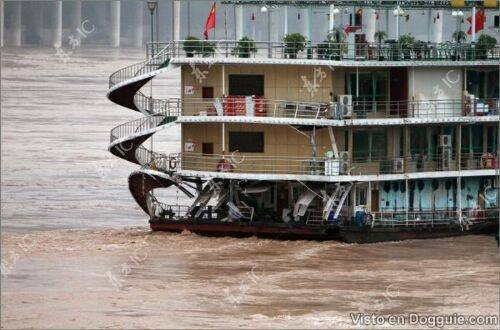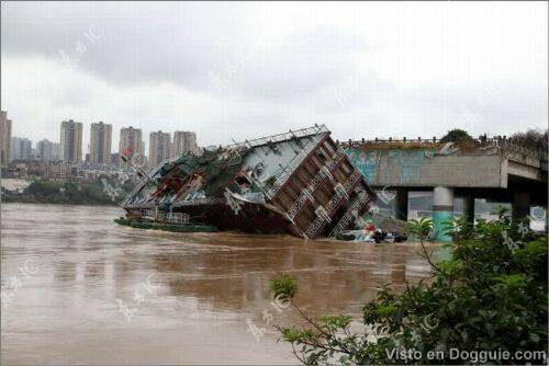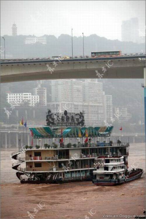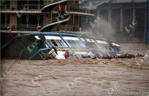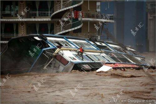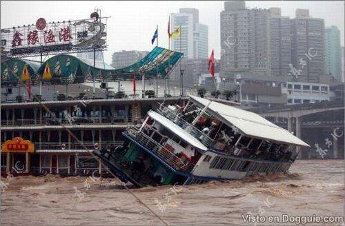 Seumpama sebuah filem, sebuah kapal yang dijadikan restoran terapung di China terbalik kerana dilanda ombak kuat.