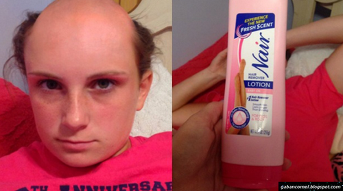 Seorang gadis berasal dari Massachusetts, England harus kehilangan sebahagian rambutnya akibat salah menggunakan krim rambut. Menurut posting akaun Twitter Kayla Connors, saudara perempuannya itu keliru krim Nair sebagai syampu.