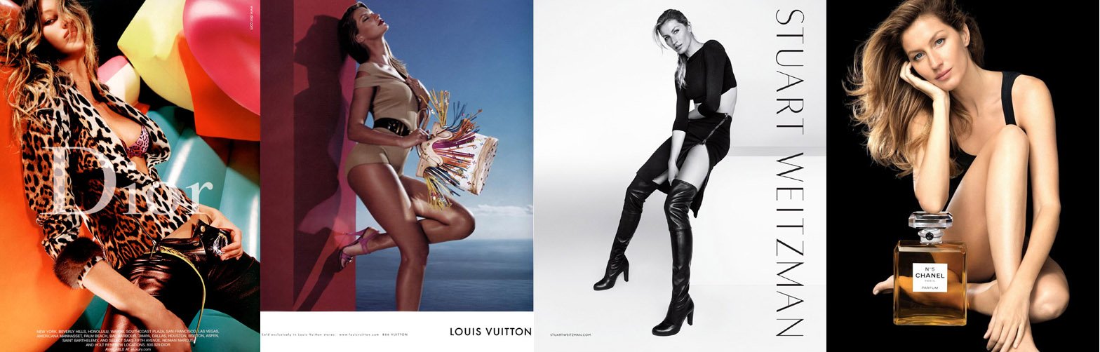 Gisele has shot countless campaigns and magazine covers and editorials, including Chanel, Dior, Givenchy, David Yurman, Roberto Cavalli, Isabel Marant, Dolce & Gabbana, Versace, Pantene, and Stuart Weitzman.