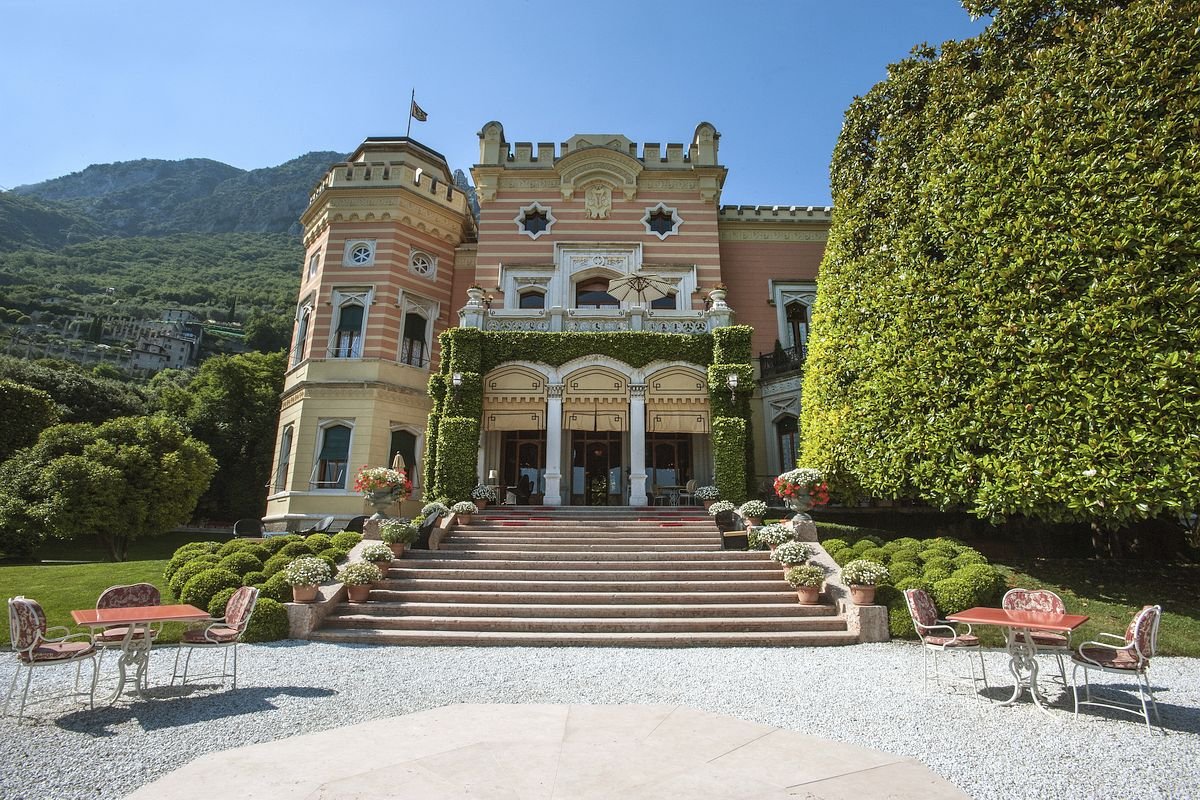 Nestled on the western shores of Lake Garda, Grand Hotel a Villa Feltrinelli is a stately neo-Gothic style mansion with splendid interiors, marvelous gardens, private boats, and Michelin-starred cuisine.