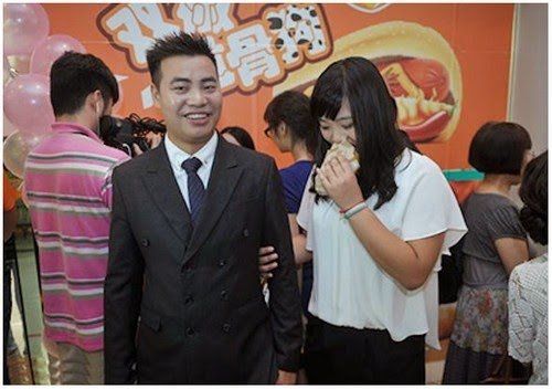 Wang Chiu menyatakan lamarannya di Chengdu, suatu kawasan di wilayah Sichuan, dengan menderet hot dog isi sosej dalam bungkusan plastik membentuk kata “Love”. Lelaki berusia 32 tahun itu menambah satu hot dog dari seribu yang ditatanya kerana ungkapan “kamu satu diantara seribu” bermakna istimewa dalam budaya China.