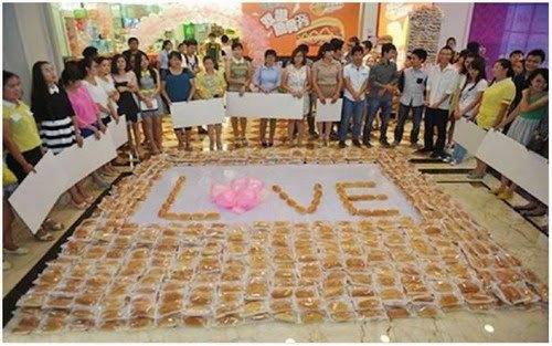 Ada banyak cara unik untuk melamar kekasih, seperti yang dilakukan Wang Chiu. Lelaki berasal dari China ini melamar Zhen Juan Kang dengan membeli 1001 roti hot dog. Semuanya itu disusun sedemikian rupa membentuk ungkapan kasih sayang.