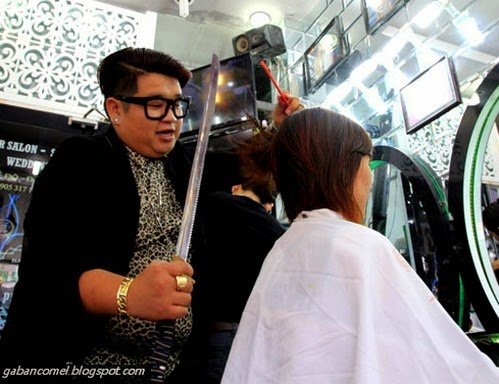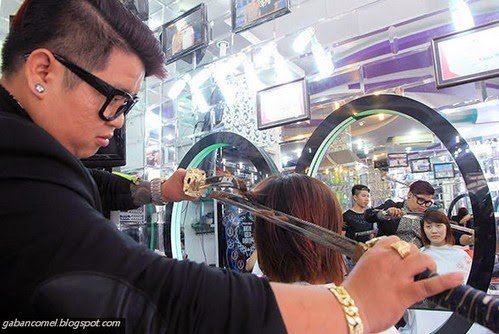 Tempat untuk mengunting rambut atau salun biasanya menggunakan gunting rambut untuk memotong rambut para pelanggannya. Namun salon yang satu ini melakukan sesuatu yang lebih berani, iaitu memotong rambut pelanggannya dengan menggunakan pedang samurai.