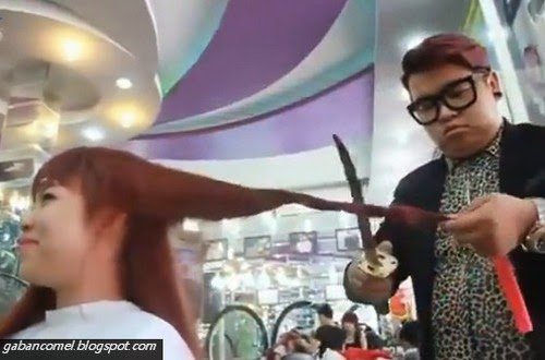 Perkara itu dilakukan oleh lelaki bernama Nguyen Hoang Hung di salah satu kedai di Vietnam. Tidak boleh dibayangkan bagaimana tekniknya, walaupun begitu rambut hasil potongan Hung selalu bagus dan memuaskan para pelanggannya.
