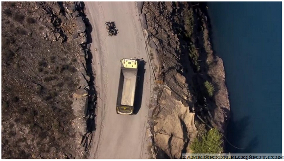 Untuk menunjukkan sistem pemanduan yang luar biasa, mereka membawa hamster untuk ‘memandu’ salah satu trak 15 seberat tan menyusuri jalanan di sebuah lombong yang sangat berbahaya. Hamster ditempatkan di roda berjalan yang di tampal bahagian stering, Pemandu mengarahkan hamster dengan lobak merah.