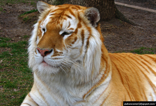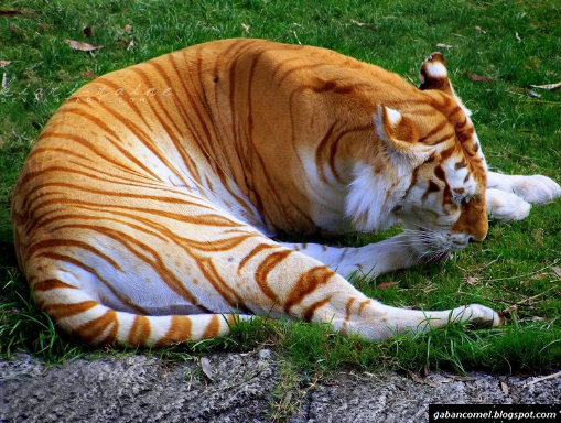 Harimau berjalur keemasan “golden tabby tiger” merupakan salah satu spesies haiwan yang sangat jarang kita temui atau jumpa. Harimau ini mempunyai bulu emas yang bercahaya, kaki pucat dan bergaris oren. Bulunya cenderung lebih tebal dari kebanyakan harimau biasanya. Selain itu, harimau ini cenderung bertubuh lebih besar daripada harimau lainnya, bahkan harimau putih.