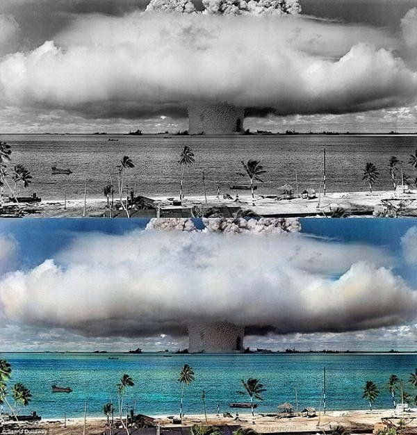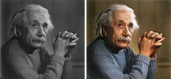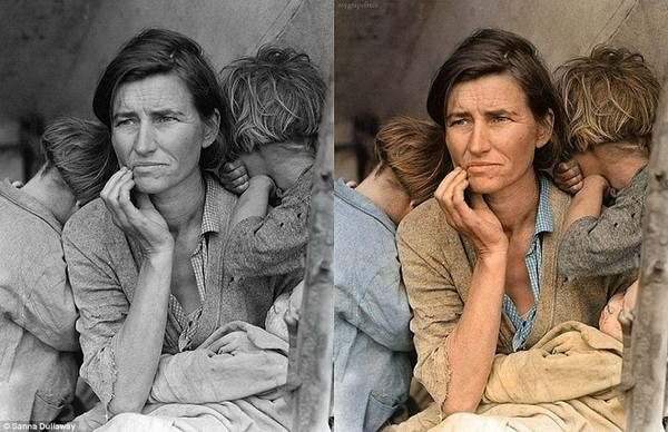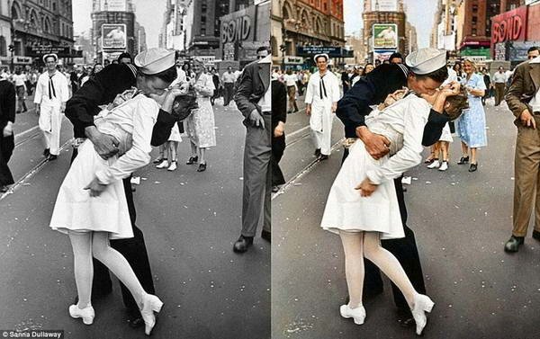 Seniman Swedia Sanna Dullaway telah mengambil sejumlah foto klasik hitam putih bersejarah yang sangat populer dan membuatnya lebih hidup dengan mengkomposisikan warna alami. Dullaway melakukannya untuk mempromosikan bisnisnya sebagai seorang ahli restorasi / pemulihan foto.