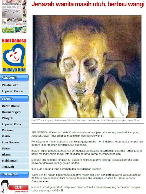 Pada mulanya, saya terkejut juga melihat gambar mayat “yang masih utuh dan wangi” itu. Ini kerana saya 100% yakin pernah melihat gambar ini dalam sebuah buku (yang tidaklah pula saya ingat tajuknya). Maka masakan pula boleh gambar itu adalah gambar mayat wanita tersebut.
