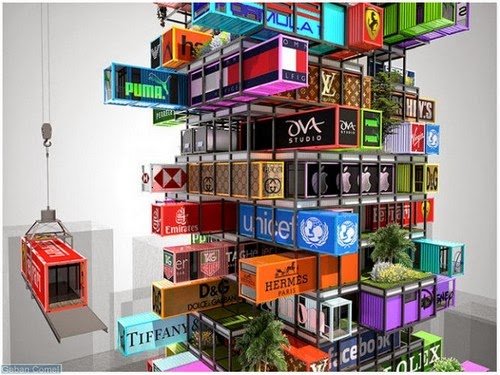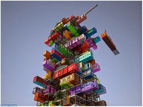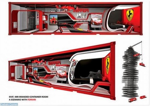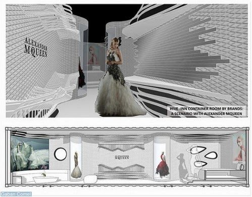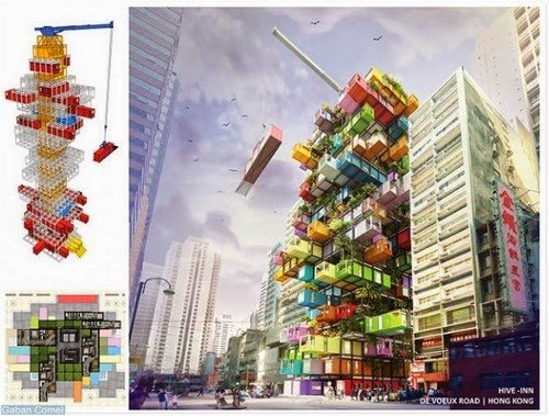 Syarikat arkitek yang berpusat di Hong Kong, OVA Studio telah merancang Hive-Inn, hotel dengan bentuk seperti permainan zig-zag yang diperbuat daripada puluhan kontena yang disusun ke atas satu sama lain. Konsep ini dikembangkan untuk Radical Innovation Award, dan diilhamkan oleh dua trend kehidupan moden iaitu fleksibiliti maksimum dan mobiliti.