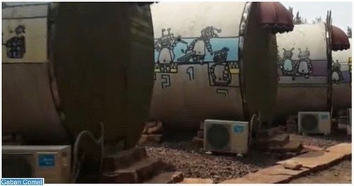 Ya, satu palung air bersaiz besar itu diubah menjadi bilik yang mampu memuatkan dua orang. Bilik bulat berisi dua katil itu juga dilengkapi penyaman udara. Perniagaan tersebut mempunyai 15 palong dengan cat ala street art di dinding luarnya itu dibentangkan untuk disewa.