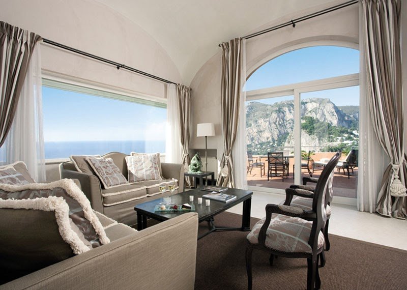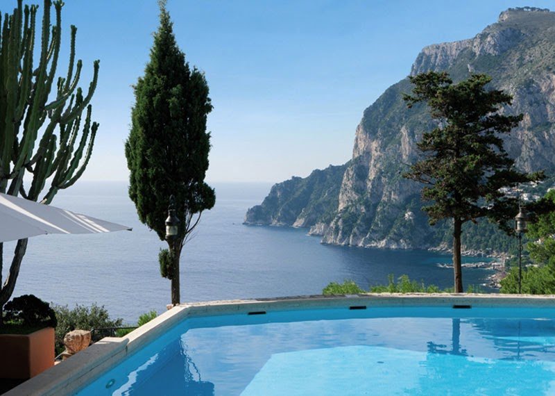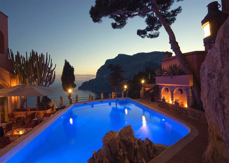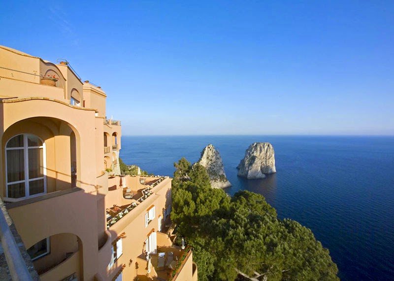 The luxurious Punta Tragara Hotel was built by the famous architect Le Corbusier. Situated in one of the most beautiful and charming areas on the Capri Island, the guests are offered beautiful views of the famous Faraglioni rocks and the sea.
