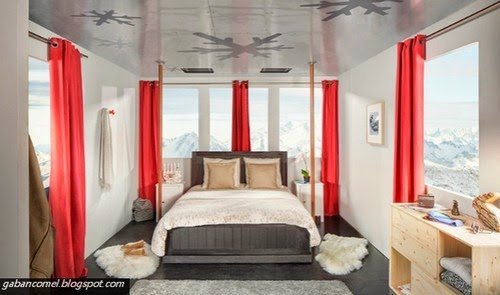 Penginapan ini boleh anda nikmati dalam cable car bersuspensi yang akan digantung di titik tertinggi dari resort ski Courchevel di kawasan Rh�ne-Alpes, Perancis. Pada pandangan pertama, benda ini nampak seperti lif ski sederhana tapi saat masuk ke dalam bilik akan nampak dalaman yang begitu mewah.