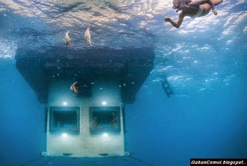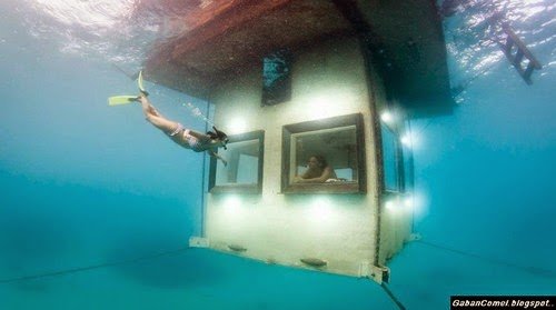 Jika ya, maka Manta Resort yang berada di sekitar Zanzibar, Tanzania, ini akan jadi hotel impian anda. Bilik hotel ini berada 4 meter di bawah laut dan mempunyai pemandangan yang sangat menakjubkan, baik saat siang mahupun malam hari.