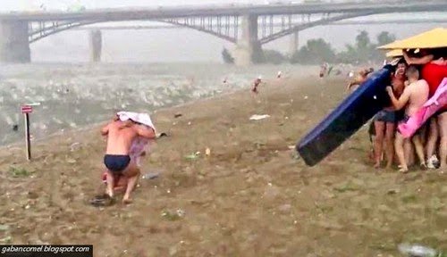 Tiba-tiba angin kencang menghentam pantai berpasir di Novosibirsk pada Sabtu petang ketika beratus-ratus orang sedang menyejukkan diri di musim panas dengan berenang di pantai. Dalam video kelihatan bagaimana orang-orang berlarian mencari tempat perlindungan dari hujan ais yang menyakitkan itu.