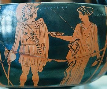 | Achilles and the Nereid Cymothoe: Attic red-figure kantharos from Volci (Cabinet des Médailles, Bibliothèque nationale, Paris) |