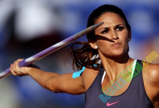 Atlit lempar lembing Leryn Franco melakukan lemparan di babak kualifikasi, Selasa (7/8). Leryn Franco memiliki tinggi 1,74 meter dan berat 54 kg ini sempat menjadi Miss Universo Paraguay tahun 2006. Dia juga sempat menjadi Miss Bikini Universe.
