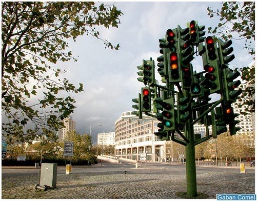 Kedengaran mungkin aneh , apalagi harus melihat ke 75 set lampu untuk menentukan keputusan ketika berada di persimpangan . Tapi memang mustahil lampu lalu lintas dibuat sebanyak itu . Kerana nyatanya lampu lalu lintas dengan 75 set hanyalah sebuah karya seni dari Pierre Vivant , pemahat Perancis dan seniman yang bekerja di pusat bandar London .