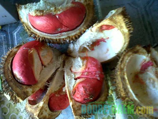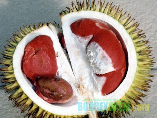 Semua orang pasti mengenal buah durian. Tapi, kalau durian berwarna merah, pasti belum banyak yang mengetahui. Bahkan, mungkin, sulit mempercayainya.