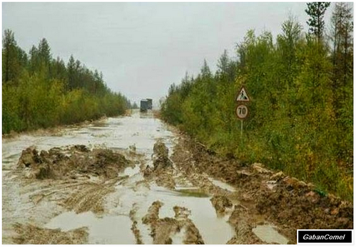 Seperti yang anda dapat lihat dalam gambar di atas, Lebuhraya Lena berada dalam keadaan yang cukup baik pada musim sejuk. Tetapi semasa di musim panas jalan ini bertukar menjadi lebuh raya yang mengerikan dan menakutkan.