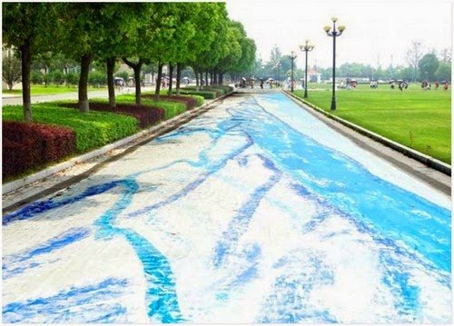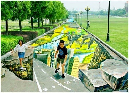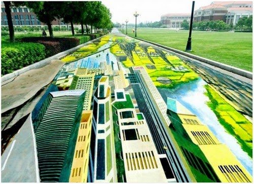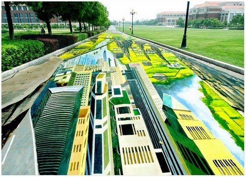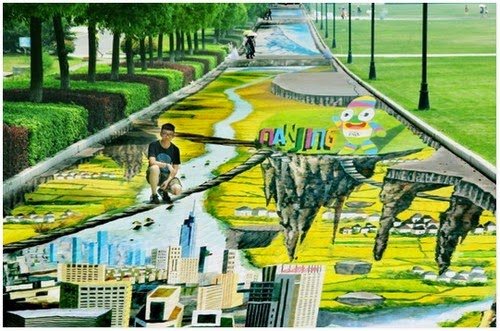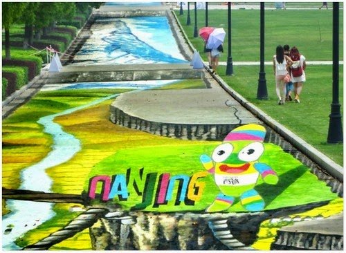 Bandar Nanjing, ibu negara Wilayah Jiangsu China, adalah kanvas baru untuk lukisan jalanan 3D terbesar dan terpanjang di dunia.