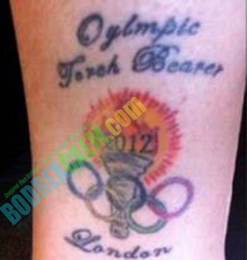 Untuk mengabadikan kebanggannya, seorang pembawa obor Olimpiade sengaja membuat tato permanen bergambar obor Olimpiade 2012 dengan tulisan ‘Olympic Torch Bearer’.