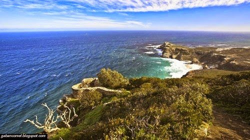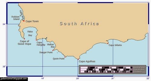 Memang, banyak orang masih percaya bahawa Cape of Good Hope adalah hujung paling selatan dari benua Afrika, namun gelaran itu sekarang milik Cape Agulhas, tanjung berbatu menarik, berjarak 150 kilometer lebih jauh ke selatan. Kebetulan, Cape Agulhas juga merupakan tempat di mana garis pemisah rasmi antara Lautan Atlantik dan Lautan Hindi. Sebuah batu penanda pun ditempatkan di batu di pantai untuk menandakan.