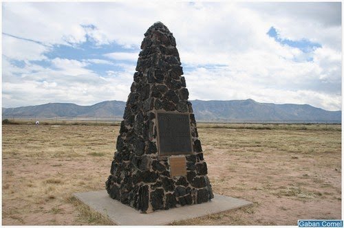 Di padang pasir, terdapat sebuah rumah ladang tua yang terus diabadikan. Rupanya, ini adalah tempat di mana saintis Robert Oppenheimer memasang bom penuh sejarah tersebut. Tingkap pecah, atapnya hilang akibat gelegar letupan, tapi rumah dan kerangkanya masih terus wujud hingga hari ini.