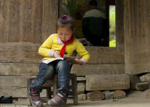 | Xinxin Yu, 5-year girl is studying a moment before finally traveling to struggle every day to school. |