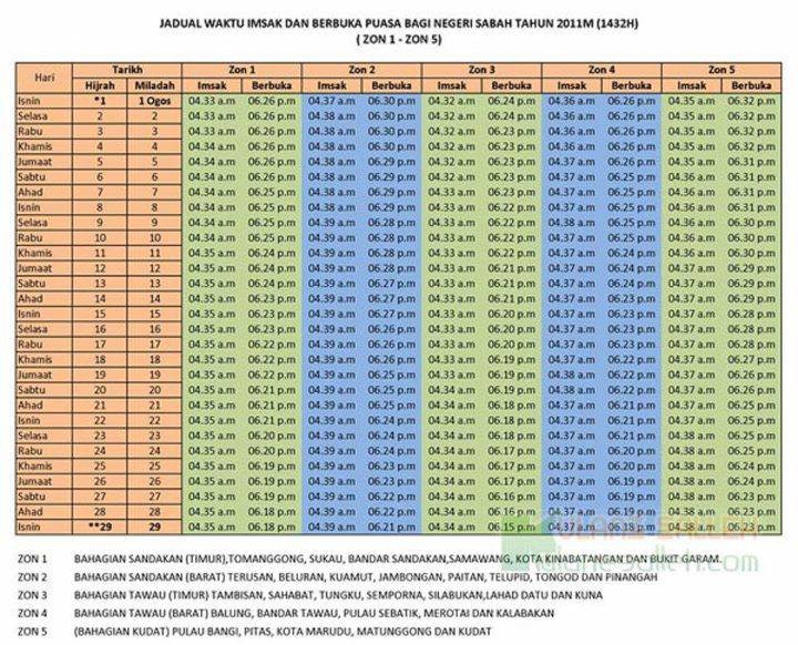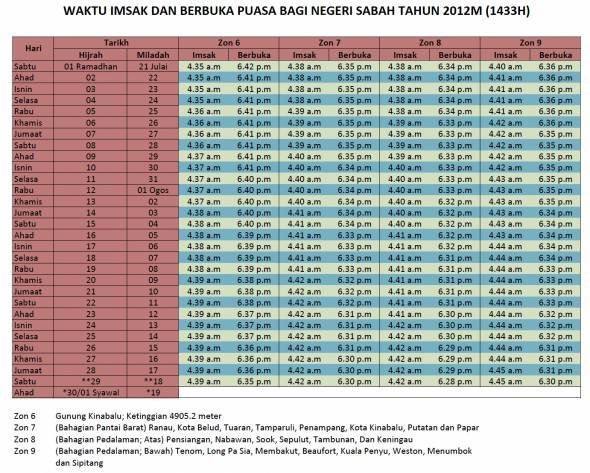 JADUAL IMSAK DAN BERBUKA PUASA BAGI NEGERI SABAH.