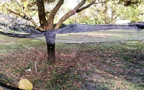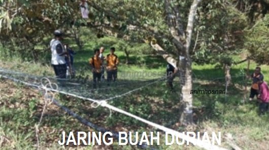JARING ATAU PUKAT DIBAWAH POKOK DURIAN kini adalah merupakan satu kaedah atau teknologi yang dilakuka oleh pemilik kebun durian bagi mendapatkan buah durian berkualiti. Memasang Pukat atau Meletakkan Jaring (Jaring atau pukat Ikan) dibawah pokok durian dewasa semasa musim buah durian gugur merupakan satu rekomendasi kepada pemilik dudun durian semuasa buah gugur oleh Jabatan Pertanian. Jaring atau pukat yang terpakai atau jaring baru dipasang dengan merentang disekeliling pokok durian dengan ketinggian 0.5-1.0 meter atau mengikut kesesuaian dan keceruna dusun diatas tanah. Jaring ini akan berfungsi sebagai penampan (cushion) jika buah durian jatuh atau gugur tanpa mengira waktu kebawah. Buah durian ini akan jatuh diatas hamparan jaring yang menjadikan kulitnya tidak pecah atau isinya tidak cepat rosak (Sila lihat foto diatas). Penulis blog sering ditanya rakan dan petani dari seluruh negara apakah waktu pling kerp berlaku durian gugur. Maka saya akan jawab di waktu malam atau subuh hari. Kemudian ditanya lagi kenapa durian sebagai buah digelar ‘Raja Segala Buah’ ini suka gugur malam masa gelap. Apa yang pelik saya puas menjelaskan kepada mereka secara saintifik mengenai perkara ini akan tetapi mereka jawab dengan muadah… Durian takut gugur siang hari kerana ‘DURIAN TAKUT AKAN KETINGGIAN’!. Wow!… itu jawapan luar kotak.. Ha, Ha , Ha. Buah durian lazimnya akan jatuh jadi bersih daripada kekotoran tanah, kotoran jenis sampah atau daun kayu. Buah ini juga mudah diambil kerana ia akan berkumpul untuk dipungut dan mudah untuk digredkan sebelum dipasarkan. Buah durian yang jatuh diatas jaring ini mengelakkan haiwan perosak untuk pengguna memakannya kerana ia tergantung atas jaring dengan selamat. Teknik memasang pukat ini merupakan kaedah mengutip buah durian yang sangat signifikan dikawasan dusun durian yang ada batu keras dibawahnya atau kawasan cerun bukit yang curam. Kawasn pokok durian yang berbuah dikawasan cerun bukit curam agak sukar untuk memungut hasil jika jatuh kedalam gaung. Ia juga digalakkan jika pokok durian dahannya berada diatas jalanraya dan buahnya akan gugur diatas jalan. Sama ada buah durian yang jatuh diatas jalanraya rosak akibat hentakan keras atau ia mungkin akan dipungut oleh mereka yang lalu dijalan tersebut. Artikel petang Sabtu ini sambil menonton TV3 cerita Hindustan berjudul ”Once Upon A Time in Mumbai Dobrabara” saya menulis dalam blog ”Anim Agro Technology” teknologi penggunaan jaring untuk menampa buah durian yang gugur.