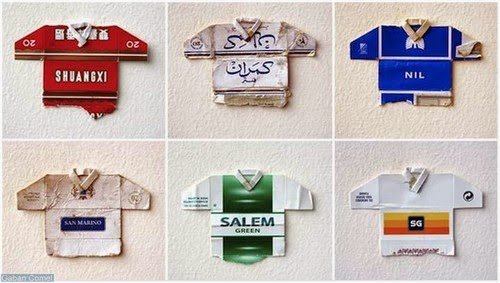 Seniman yang berasal dari eropah, Leo Fits Maurice telah mencipta karya seni kreatif, ia mengubah bungkus rokok menjadi jersi bola sepak. Dia telah mengumpul lebih dari 800 kotak rokok yang berbeza, dan merangkainya masing-masing untuk membentuk bentuk jersi. Hasil dari projek ini mempunyai persamaan yang ketara dengan beberapa jenis pasukan kebangsaan. Koleksi jersi mini berjudul ‘Post Match Series’ dipamerkan di galeri London sebelum musim Piala Dunia.