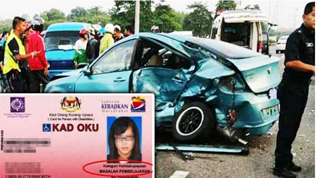 pemandu berusia 19 tahun itu mempunyai kad OKU.