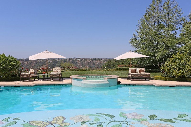 $23.5 million. It’s a 16,000 square foot residence, which features 9 bedrooms, 11 bathrooms, a two-storey entry hall, a wood-paneled library, a formal living room, a mosaic –tiled resort pool, sprawling lawns, a playground, a 4+ car garage and