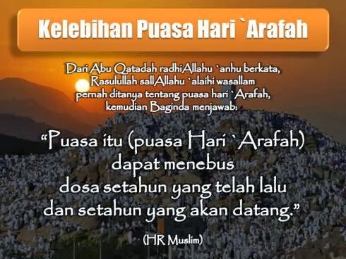 Insya Allah hari Arafah di tahun ini akan jatuh pada tanggal 14 Oktober 2013. Esok Hari Isnin. Semoga kita termasuk orang yang dimudahkan oleh Allah untuk melakukan puasa tersebut dan meraih keutamaan di dalamnya.