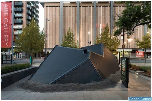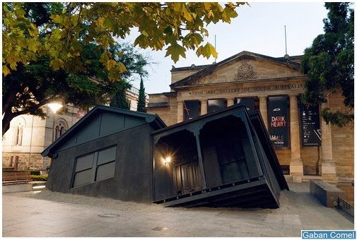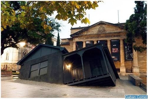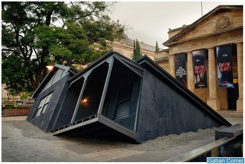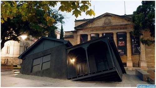 Seniman, Ian Strange telah mencipta sebuah pemasangan outdoor iaitu sebuah rumah yang seolah-olah tenggelam ke dalam tanah. Berjudul ‘Mendarat’, pemasangan itu menunjukkan sebuah rumah berwarna hitam yang kelihatan seolah-olah ditelan oleh bumi. Karya ini dibuat untuk Biennial of Australian Art 2014, yang saat ini sedang diadakan di Galeri Seni Australia Selatan di Adelaide sampai 11 Mei.