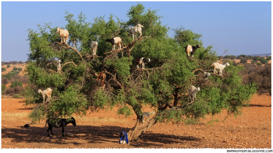 Di sebuah desa kecil bernamaTamri di, kambing- kambing memanjat pokok Argan untuk mencari makanan. Berry Argan adalah makanan terbaik yang boleh dibayangkan oleh kambing Tamri , dan untuk memakan buah mereka harus mahir memanjat pokok.