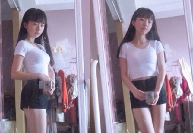 Sebagai seorang remaja, Shi beruntung memiliki tubuh yang mungil nan langsing. Tak heran dia cukup percaya diri memakai hotpants dan memamerkan kedua kaki rampingnya lalu berfoto di depan cermin. Seksi bukan?