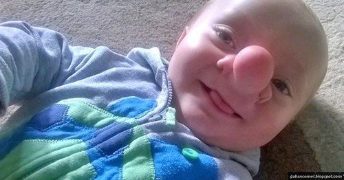 Seorang bayi berusia 21 bulan di sini memiliki hidung seperti watak kartun Pinocchio kerana menghidap sejenis penyakit ganjil.