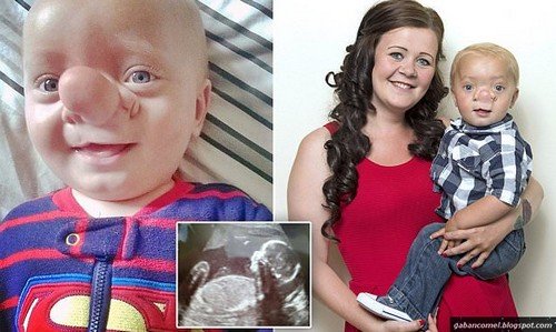 Ibunya, Amy Poole, 22, berkata, beberapa doktor yang melakukan ujian X-ray semasa kandungannya berusia 20 minggu telah mengesan kecacatan pada bayinya kerana beberapa tisu otaknya membesar pada bahagian wajah.