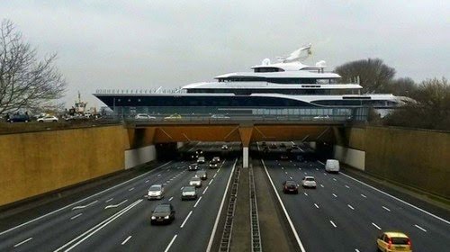 Foto itu ditemui oleh Feadship Fanclub, memperlihatkan Sypmphony, melewati saluran air Gouwe di Gouda, Belanda. Kapal layar itu dalam perjalanan dari Kaag tokeRotterdam. Di bawah saluran air adalah sebuah jalan raya A12 (Hague ke Arnhem).
