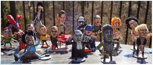 Permukaan kulit kacang pun siap dilakar dengan lukisan wajah para selebriti. Pemasangan tangan dilakukan sebagai peringkat akhir.
